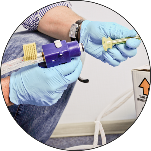 - Распылите снова в ненужный контейнер небольшое количество пены, чтобы убедиться что продукт смешивается должным образом. Пена должна быть кремового цвета (коричневый или белый цвет указывает на то, что один из компонентов работает неправильно).