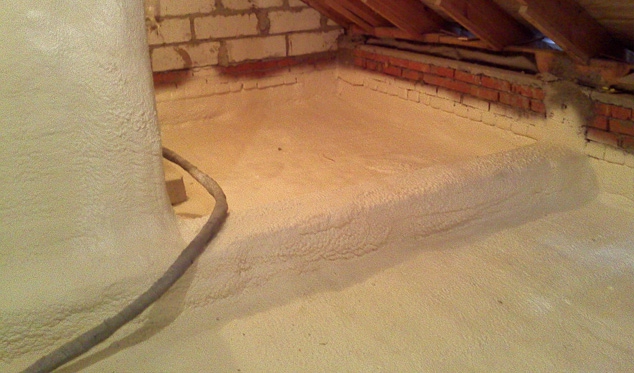 Напыление пенополиуретана прекрасно решает обе эти проблемы. Пенополиуретановая теплоизоляция может наноситься на перекрытие как со стороны потолка, так и со стороны чедачного помещения в зависимости от конструктивных особенностей вашего дома.