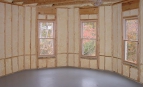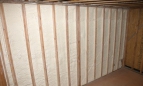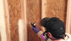 - Нанесите при помощи комплекта Touch'n Seal Foam Kit пенополиуретан на поверзность стен между направляющими из дерева или направляющими для гипсокартона. (Если высота направляющих больше планируемого слоя пенополиуретана, заполнять пространство целиком необязательно)