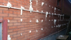 - Сделайте разметку под отверстия для заполнения пенополиуретаном из расчета шага по вертикали и горизонтали примерно 50 см и просверлите необходимое количество отверстий лиаметром примерно 1,5 - 2 см.